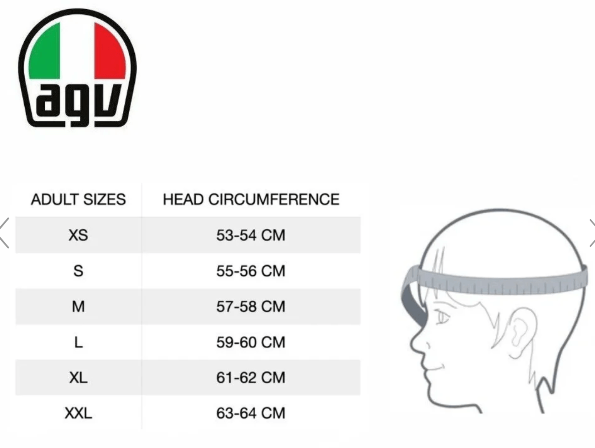 - All the AGV products are constantly subject to a continual improvement process, that’s why AGV reserves the right to make changes, without prior notice, to the products object of this technical sheet.