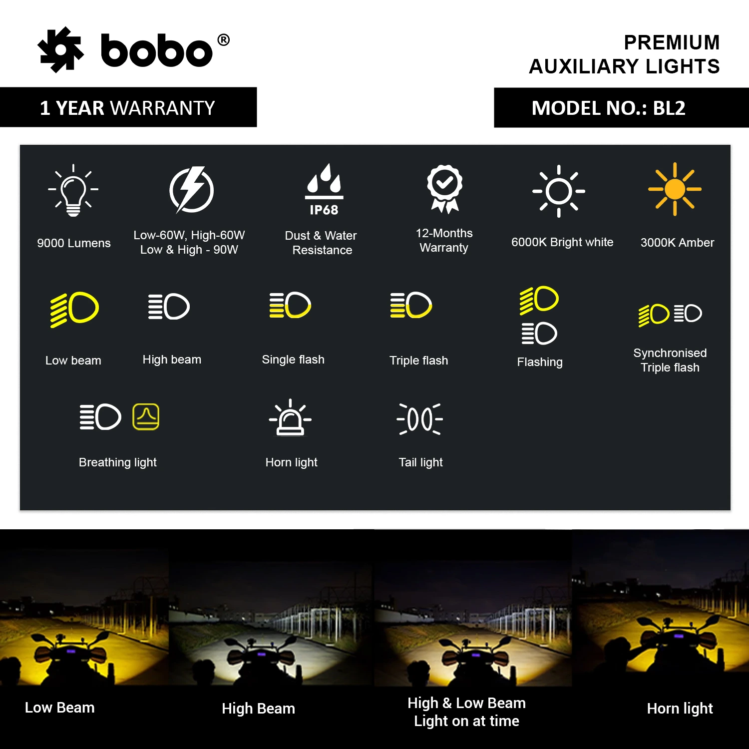 - BOBO BL2 Premium 60W LED Auxiliary Lights Dual Colour