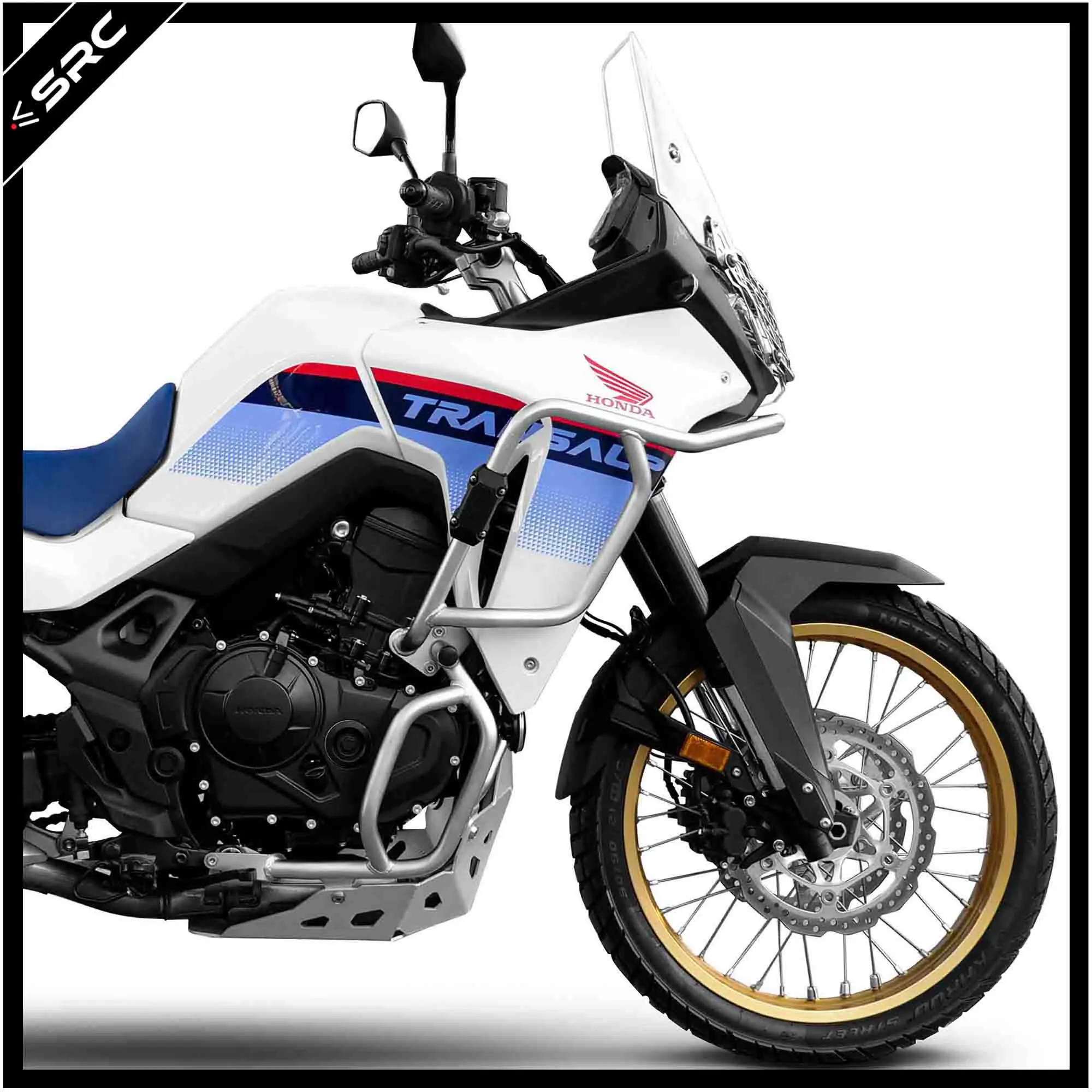 heavy-duty crash bars with integrated skid plate for HONDA’s all-new Transalp XR750.