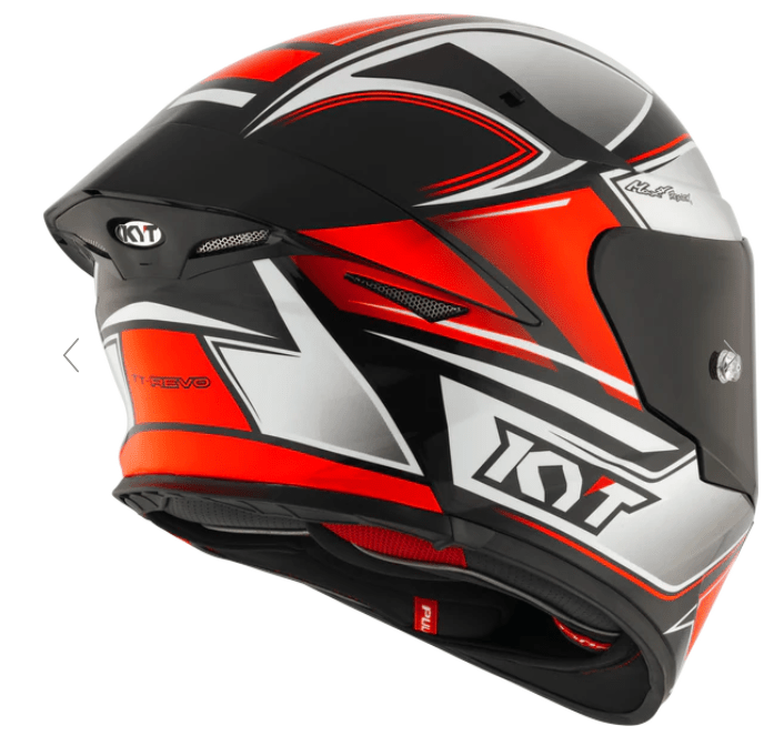 Particular channelings obtained on polystyrene allow to work in symbiosis with the several air intakes to obtain an optimal ventilation into the helmet and a quickly exhaust of the hot air. TT Revo has five air intakes on the front and four air extractors under the aerodynamics spoiler.