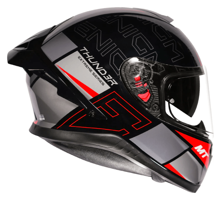 - Building on the solid reputation of the earlier Thunder 3, MT helmets have used their experience in MotoGP to develop a wind tunnel-tested and aerodynamically stable Drag Reduction System instead of a traditional spoiler.