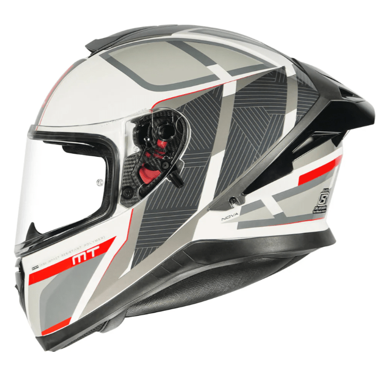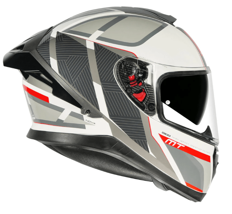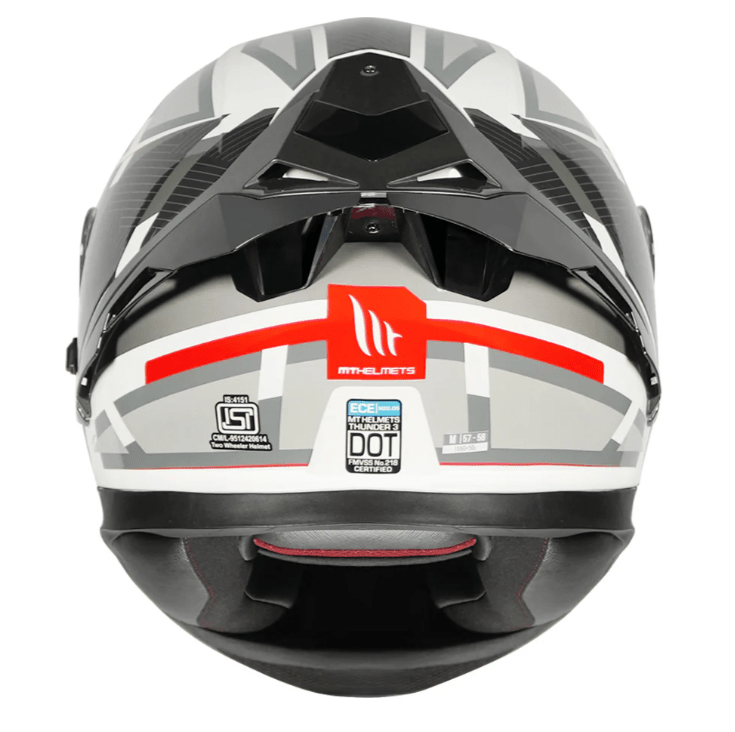 • Building on the solid reputation of the earlier Thunder 3, MT helmets have used their experience in MotoGP to develop a wind tunnel-tested and aerodynamically stable Drag Reduction System instead of a traditional spoiler.