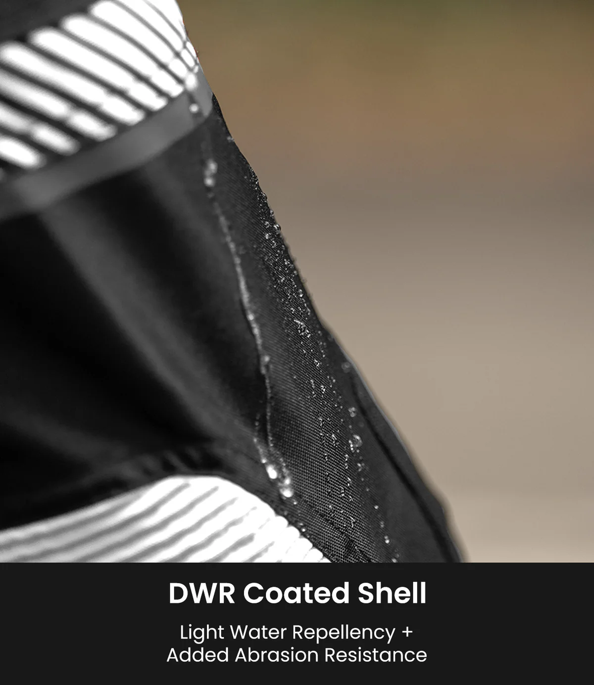 - DWR Shell: DWR coat on polyester shell for water repellency and abrasion resistance
