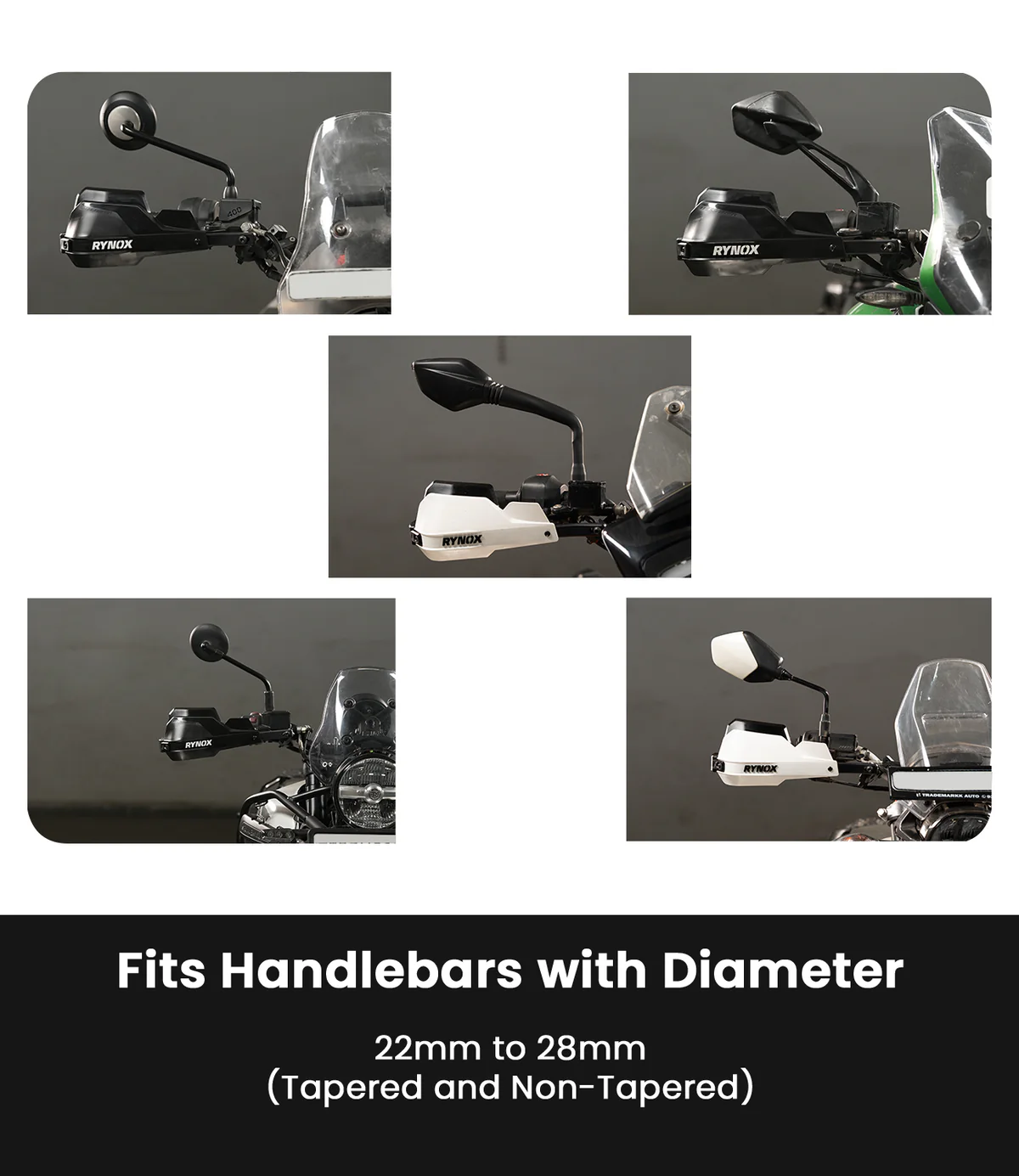 One of the core features of the Defender Pro Handguards is their universal compatibility. The handguards come with an all inclusive mounting kit that is directly compatible with a wide range of motorcycles. Whether your bike has a non-tapered or tapered handlebar, the mounting hardware can fit both types with diameters ranging from 22mm to 28mm without the worry buying additional adapters or fitment