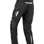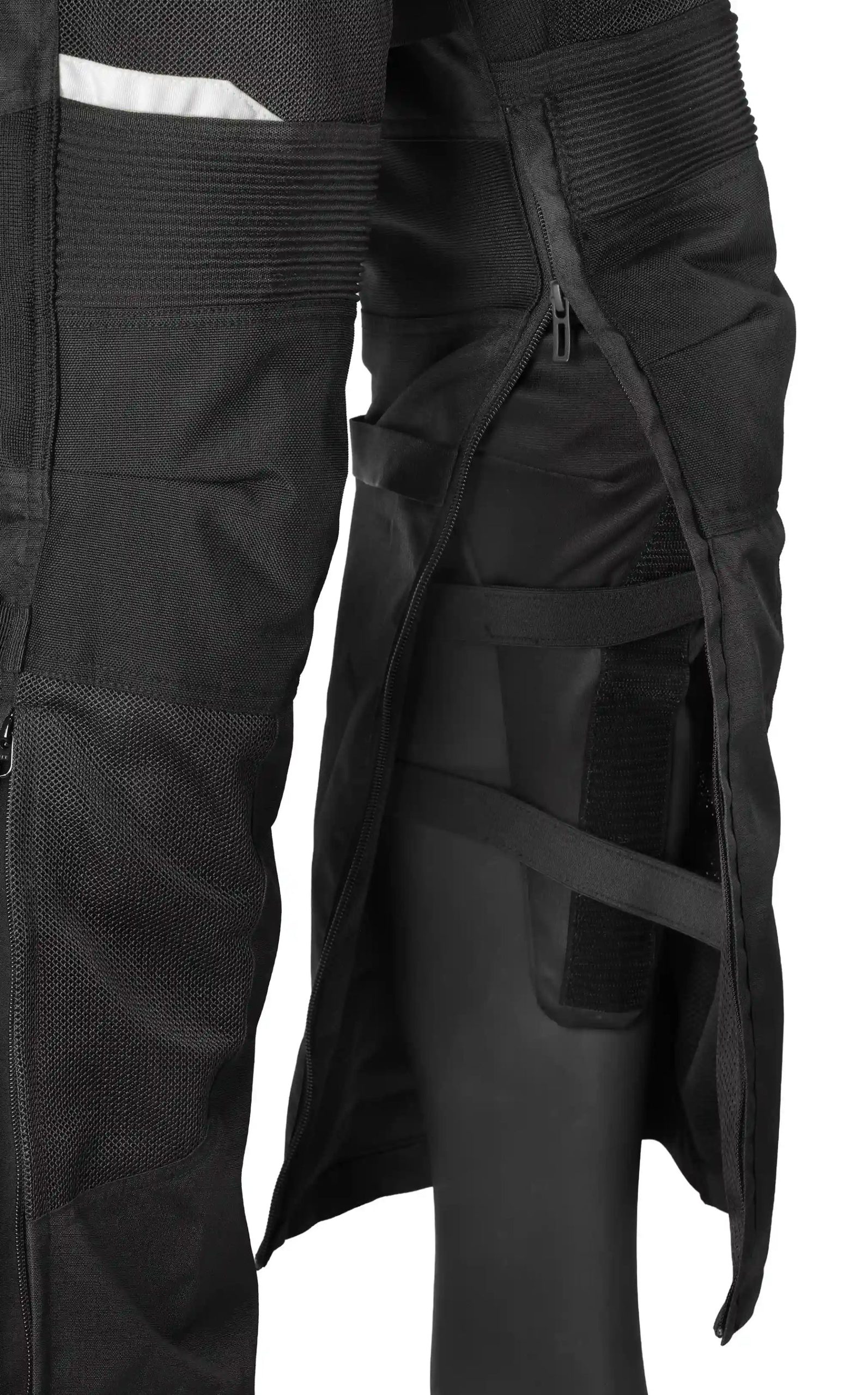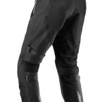 Designed to be easier to adjust and offer a high degree of adjustment—consists of two zippers, one on each side of the leg. Just pull the zippers up and access the armour which is in a pocket itself backed by 2 straps and front-facing velcro. Adjust the armour as you want, strap it down to your leg, and then just roll the pant velcro panel over it and pull the zippers down. It works easier and offers superb comfort.