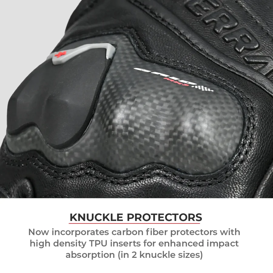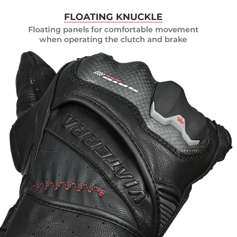The ViaTerra Grid Mk3 is the latest improved iteration of our feature-loaded full gauntlet riding gloves that offers all the protection you need for track or touring use! The Grid Mk3 continues to feature the same premium, top of the line KNOX SPS 404 protection used in the world’s most advanced gloves. Enhanced with CE Level 2 carbon fiber protectors with TPU inserts for the knuckles, carbon fiber wrist sliders and goat skin leather and pinky finger bridge, these gloves offer the ultimate protection for Indian riders.