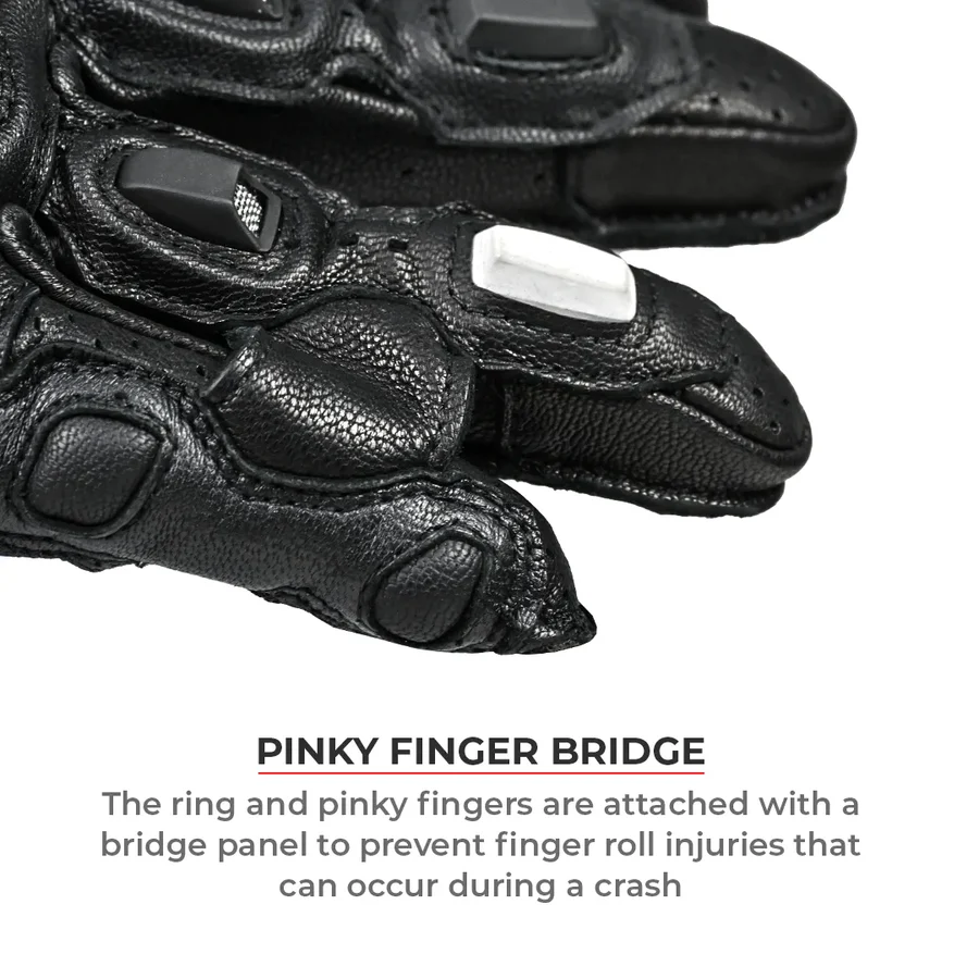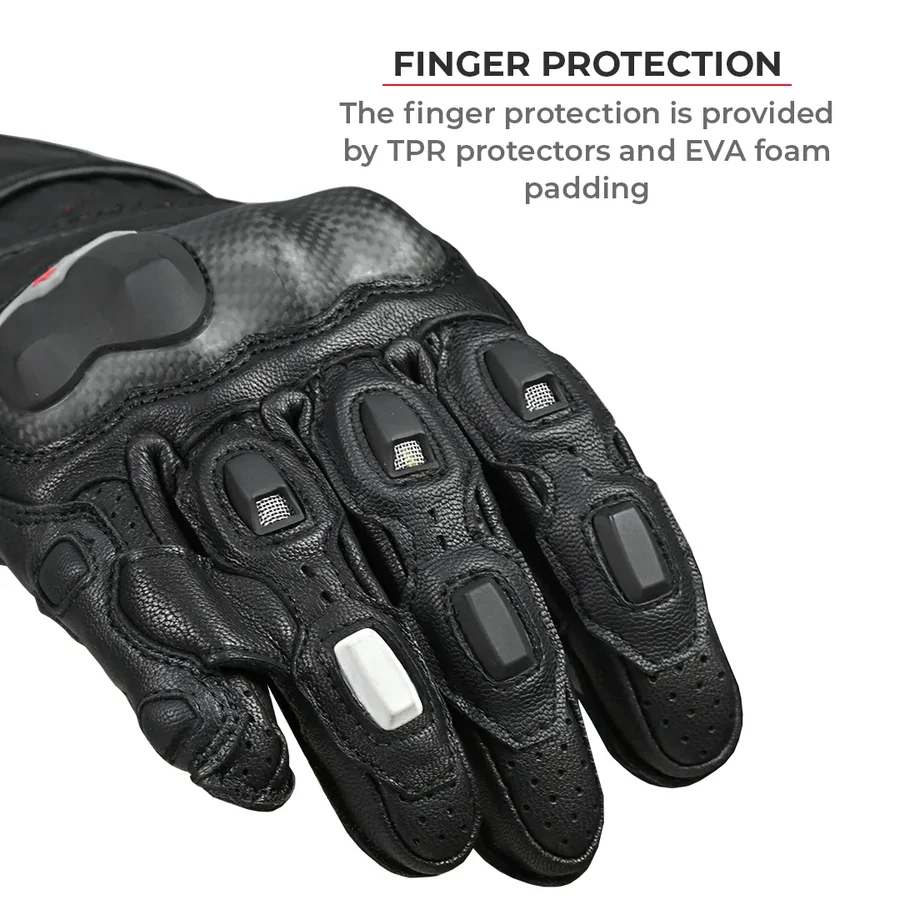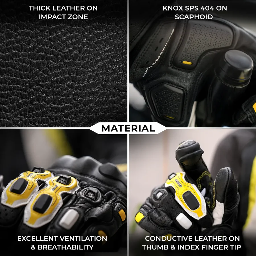 Equipped with the premium KNOX SPS 404 protection, the Grid Mk3 features carbon fiber protectors with high-density TPU inserts for the knuckles (CE Level 2), along with carbon fiber wrist sliders, goat skin leather palms, and a pinky finger bridge, offering exceptional protection for Indian riders.