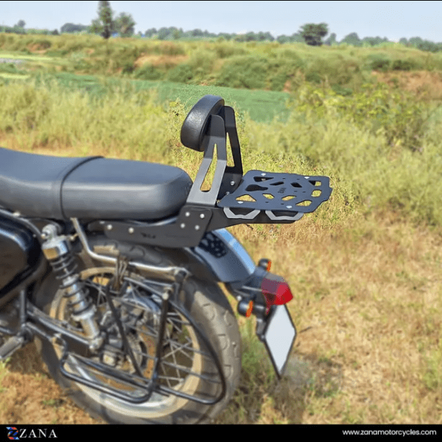 Designed to enhance your BSA Goldstar 650’s functionality and passenger comfort, this Top Rack with Pillion Backrest (Type-1) is crafted from durable mild steel with a sleek black finish. It offers a perfect blend of strength, style, and convenience, making it a must-have accessory for both long-distance touring and daily commuting.